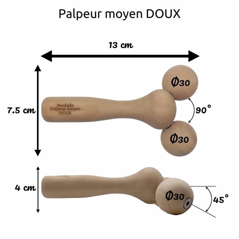 Le Palpeur Moyen agit grâce à son principe mécanique d’inclinaison, qui reproduit une action pétrissante et drainante, tout en favorisant la décontraction musculaire. Plus polyvalent, sa taille est idéale pour travailler les volumes du visage et les zones de tensions localisées sur le corps.